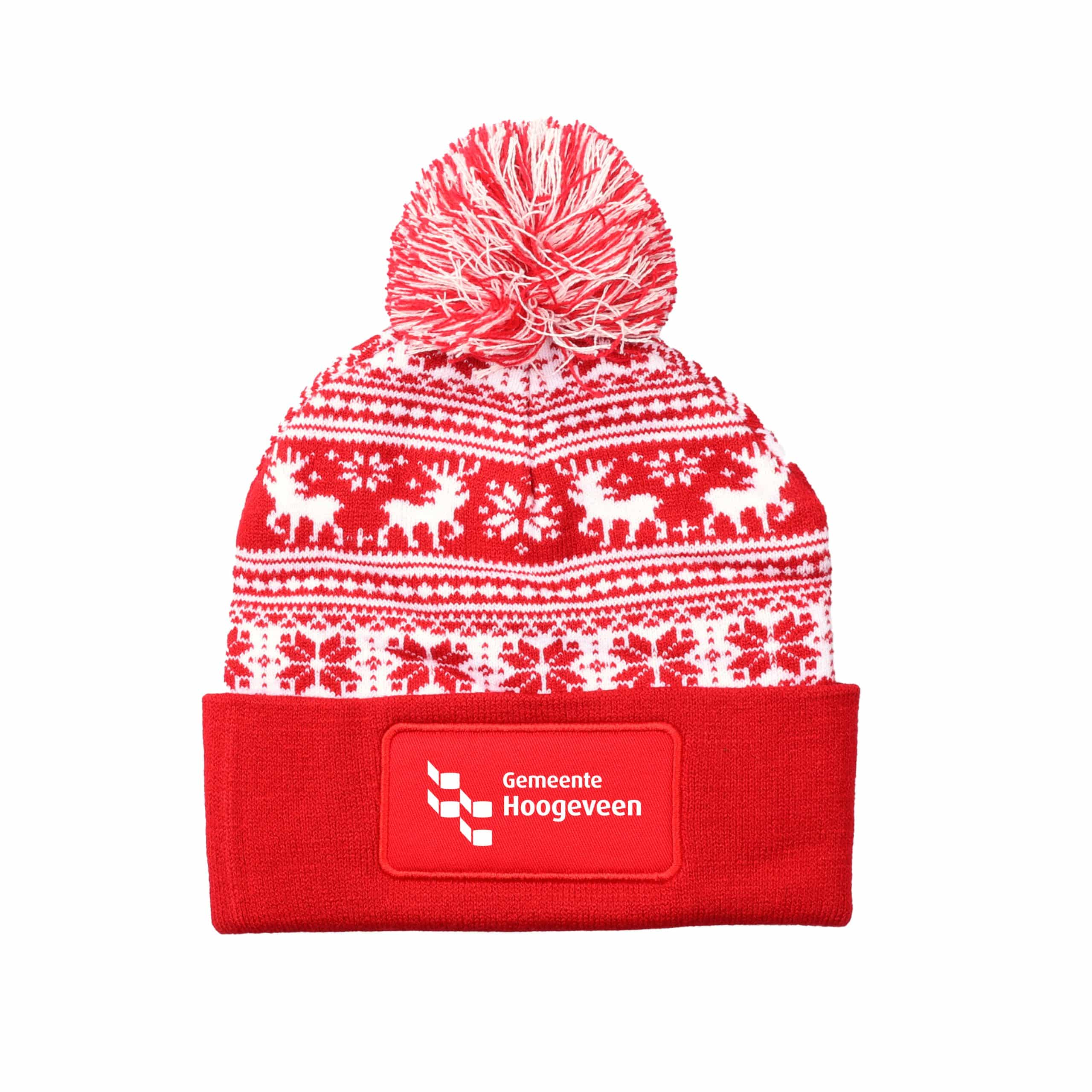 Ben jij op zoek naar warme mutsen met eigen logo of tekst? Bij ons kun je deze opvallende rode wintermutsen bedrukken met jouw eigen logo en/of tekst. Deze warme mutsen met rood-witte pluim zijn perfect om te dragen tijdens feesten, evenementen of op wintersport vakantie. Met deze mutsen zul je goed opvallen tijdens het feest en zorg je voor extra zichtbaarheid van jouw bedrijf, merk etc. Deze rode kerstmutsen kun je in kleine aantallen laten bedrukken, vanaf vijf stuks. Maar ook grote aantallen zijn voor ons geen enkel probleem. Deze mutsen met bedrukking vind je nergens zo goedkoop. Deze muts, speciaal ontworpen voor kerst en de winter, heeft een one-size maat voor volwassenen en kan bedrukt worden met een logo in full-colour of één kleur. Het formaat van de bedrukking kan maximaal 70 x 40 mm zijn. De mutsen zullen bijdragen aan een winterse uitstraling vanwege de sneeuwvlokken, rendieren en kerstboompjes op de muts.